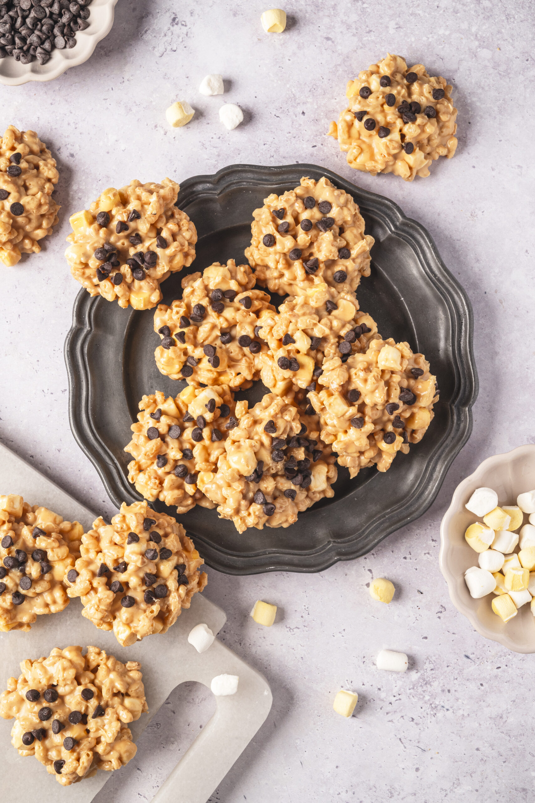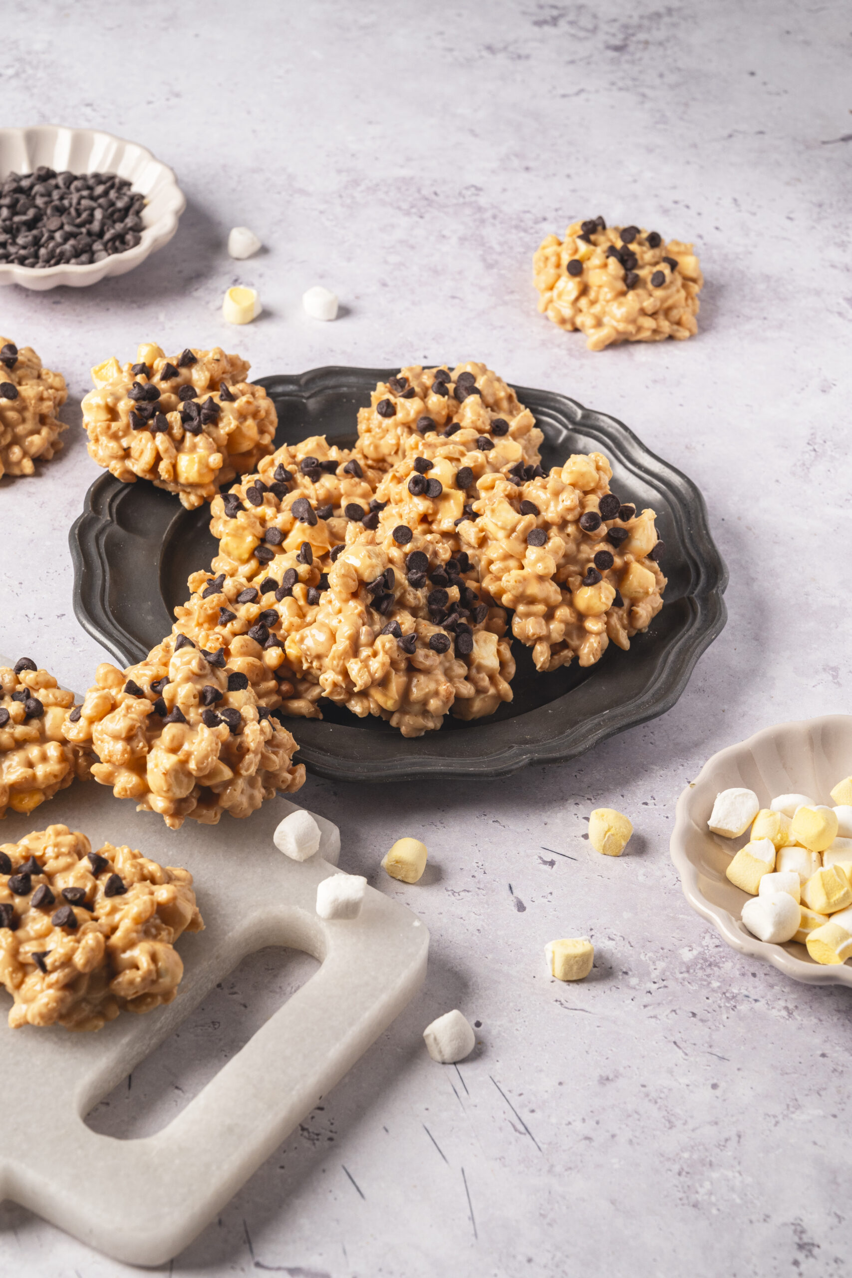 With five familiar ingredients and three simple steps, you can have a platter of avalanche cookies in no time! The combination of ingredients yields the most amazing flavor: who doesn’t love chocolate, peanut butter, and vanilla-based marshmallow all mixed up together? And that texture! Rice Krispies bring their signature snap, crackle, and pop, adding a delightful crispy chew to the cookie’s smooth and creamy components. And the mini chocolate chips on top bring their best fudgy bite. Get ready for an avalanche of flavor in these scrumptious cookies.