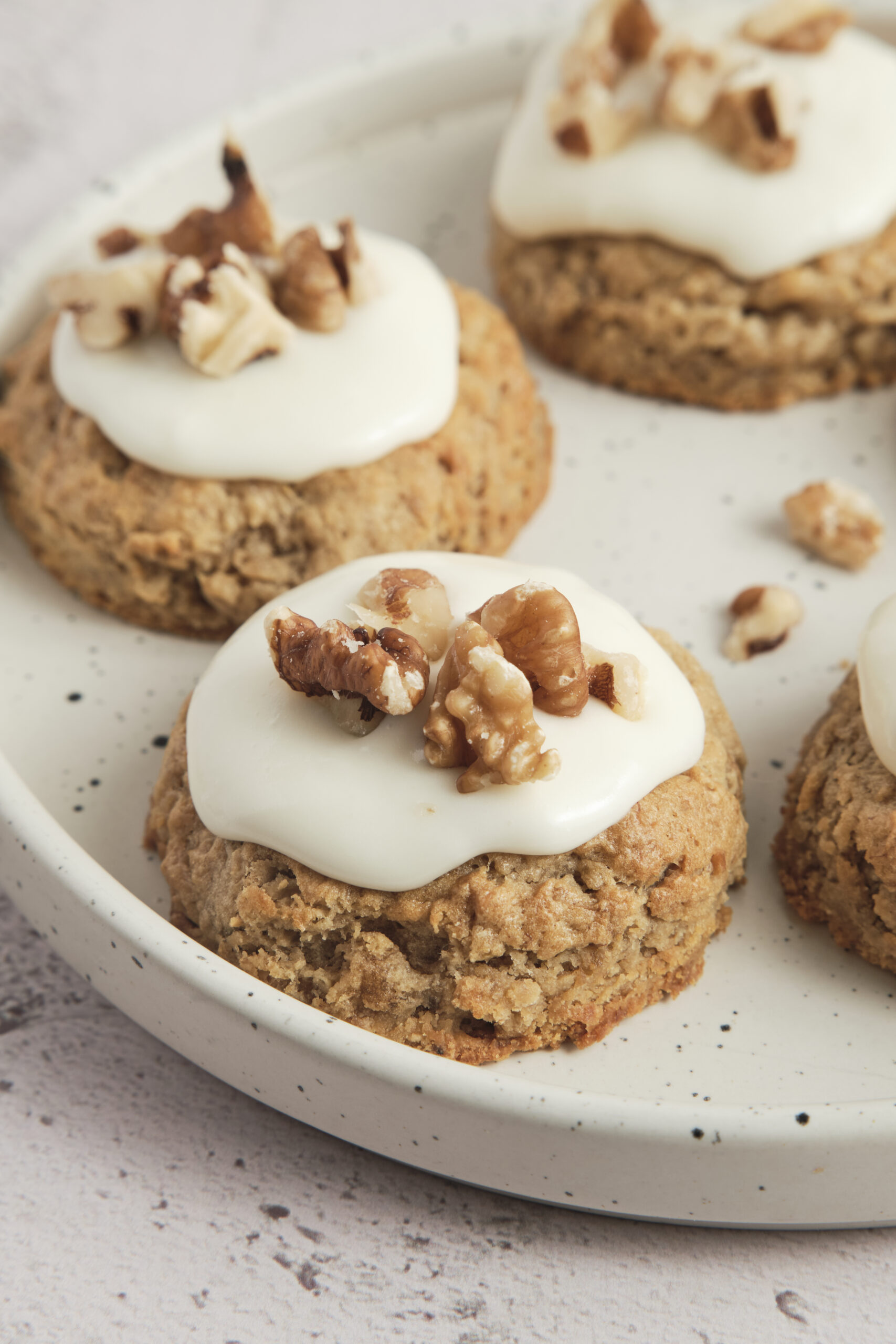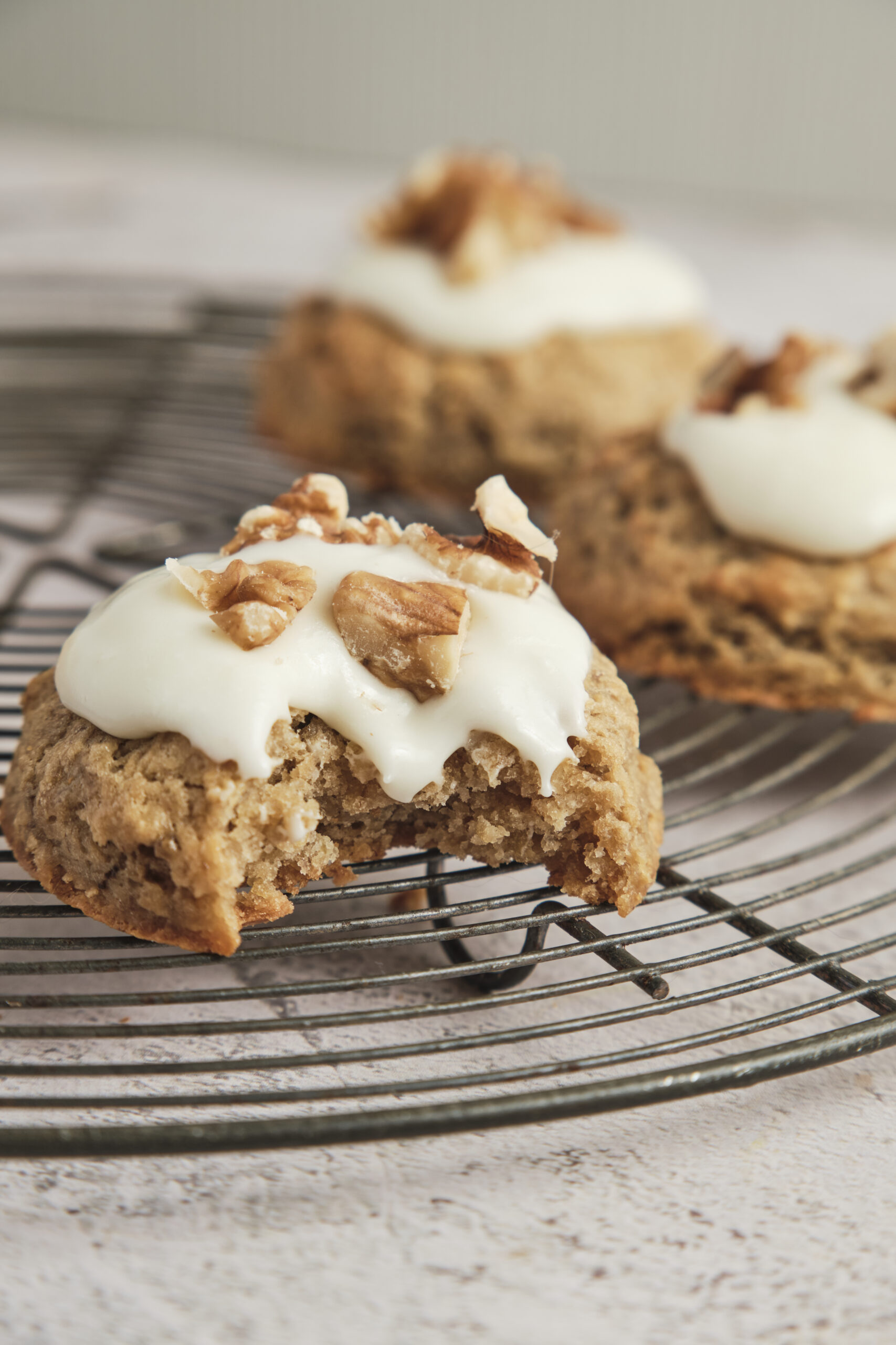 - While the cookies cool, prepare the glaze. In a small bowl, beat the cream cheese with the powdered sugar and milk until smooth. Drizzle the glaze over the cooled cookies and sprinkle with nuts if using. Enjoy!