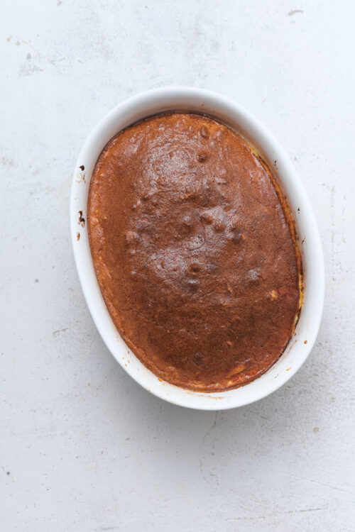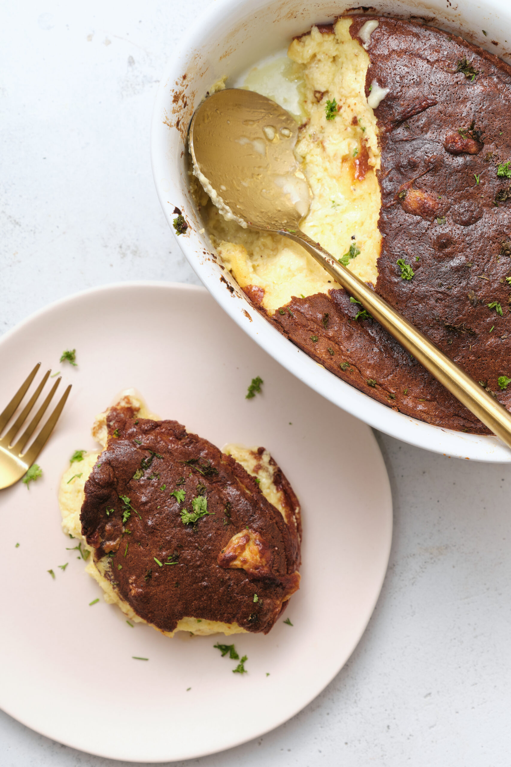 Soufflés are easy to make and best eaten the same day—however, if you must, cover the dish tightly in plastic wrap and store it in the refrigerator for up to 2 days. Bear in mind that the texture will lose some of its airiness and might become a little dense. I recommend eating it directly from the fridge, but if you would like to reheat it, then you can pop it in the microwave for 1-2 minutes to gently warm it.