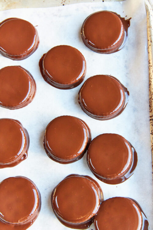 Another win for this recipe is that there’s no baking involved. Just melt the chocolate chips, dunk the peanut butter cracker sandwiches, let them cool, and you’re done. These have become a Porter family favorite, and not just around the holidays.Â