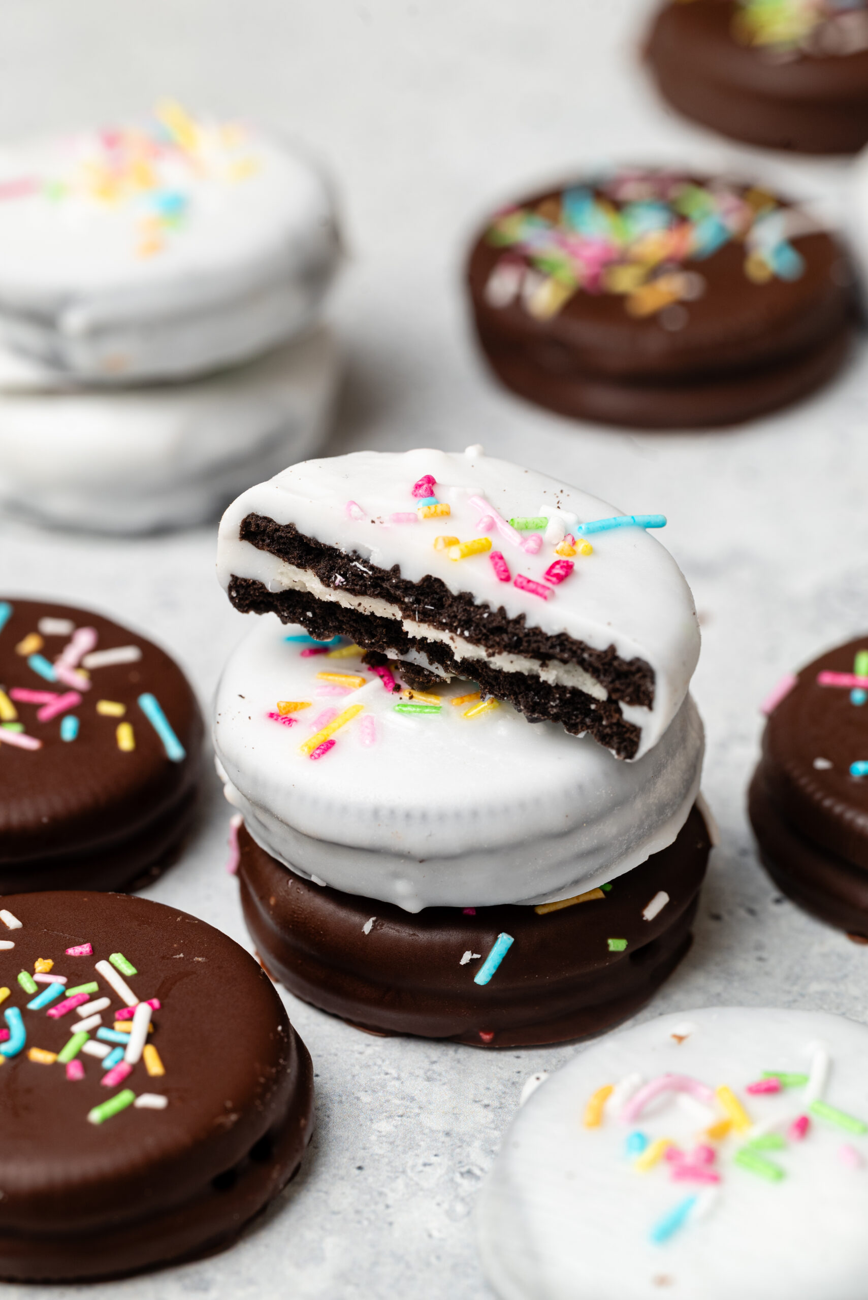 Nope. Practically any sandwich cookie will do. In fact, Newman’s sandwich cookie is a great option if you’d prefer organic ingredients. Also, Trader Joe’s makes an excellent sandwich cookie. Gluten-free varieties work as well. Heck, I’ve even used this coating on Nutter Butters!