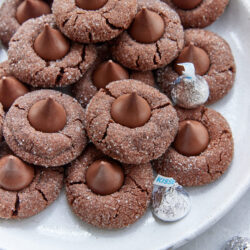 With all the cocoa powder, melted chocolate, and Hershey’s Kisses featured in this cookie recipe, you know it’s going to be good!