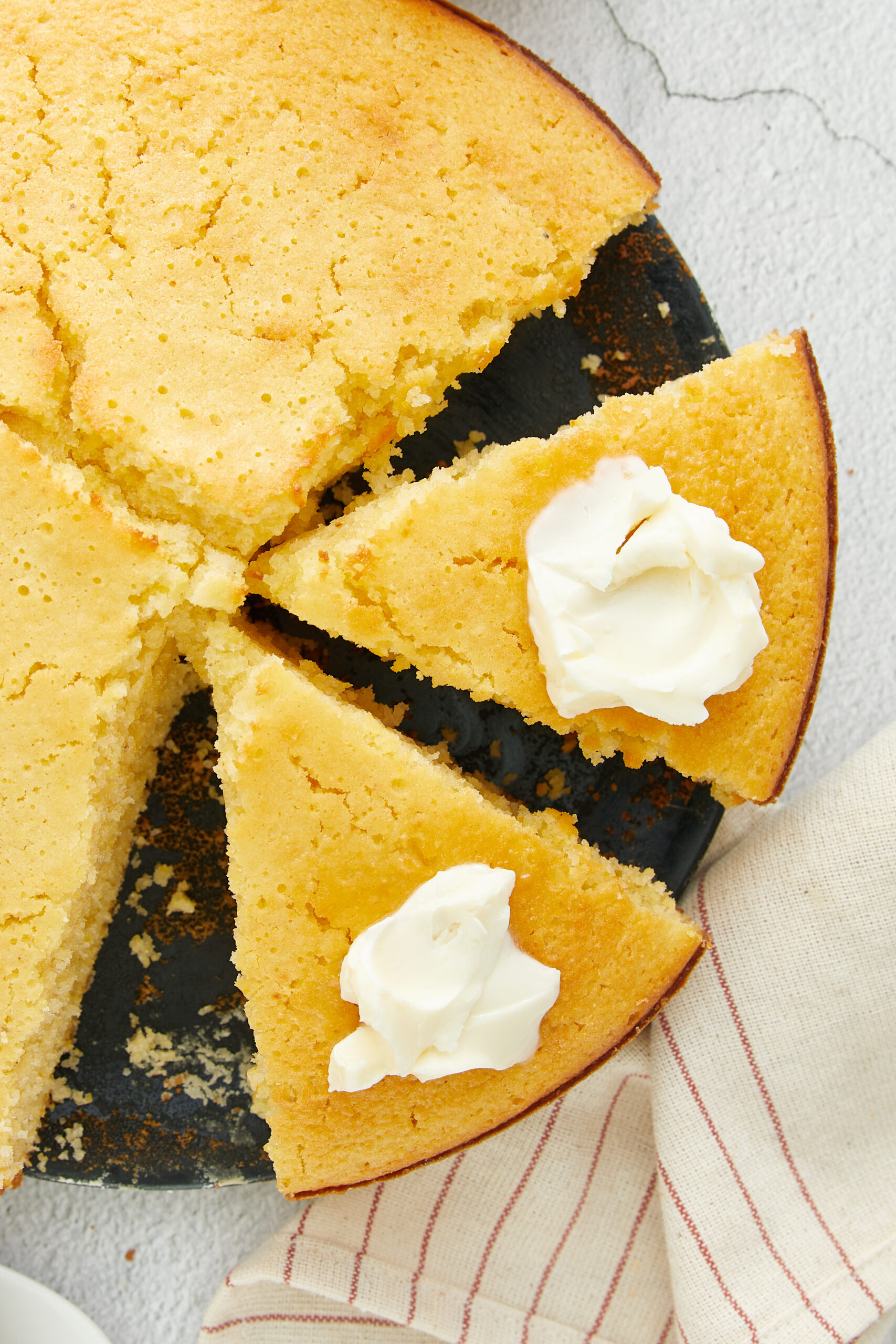 Use plastic wrap or an airtight container and store at room temperature for up to 2 days. I like to reheat the cornbread in the oven (300°F) for 10 minutes. However, be sure to cover the slices in foil to keep them moist.