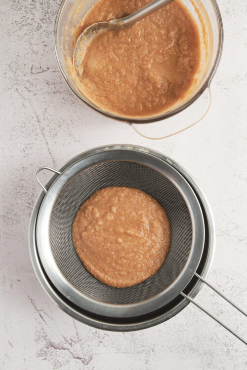 - Pass the mixture through a fine-mesh strainer, pressing all the liquid out with a spatula or the back of a ladle. Discard the solids.