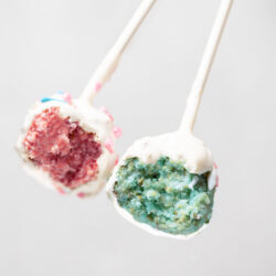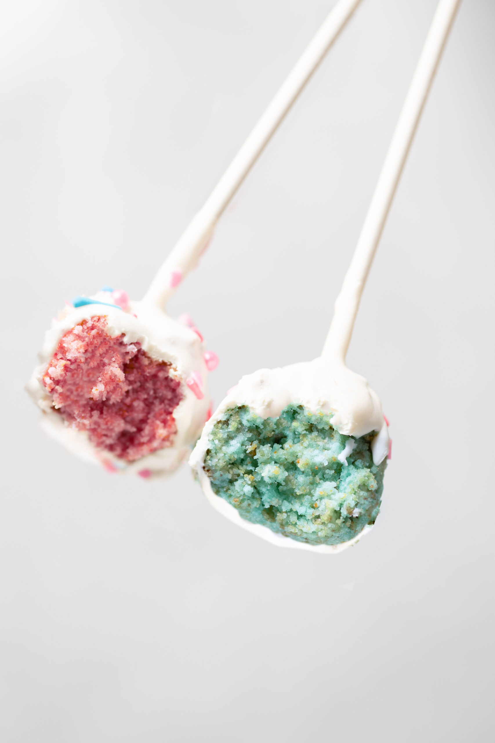 A few weeks ago, I had the honor of hosting my first baby shower for my dear friend Sarah, who’s expecting a baby girl in the coming months. Since she was planning on revealing the gender to our friend group at the shower, I wanted to find a creative and fun way for her to do it. Stumbling across this recipe for these gender reveal cake pops, I knew I found the perfect way to help her surprise everyone.