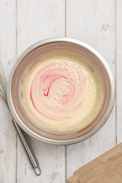 - Preheat your oven to 350°F. Clear some space in your freezer for the cake pops. Mix the white cake mix with the eggs, oil, and water as directed on the box. Add a few drops of blue or pink food coloring, depending on your chosen reveal color, to achieve a gentle tint in the batter.