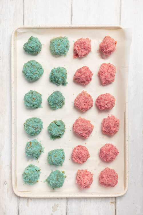 - Using roughly 2 tablespoons of the mixture at a time, shape the dough into balls by rolling it between your palms. Arrange the cake balls on a baking sheet lined with parchment paper.