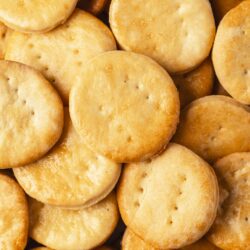 And now you can make homemade Ritz crackers in your very own kitchen. The recipe is simple and straightforward, and the result is so delectable. The dough comes together easily and, after a brief rest in the fridge, is a cinch to roll out. Then comes the fun part. Cut out the crackers with a round, ridged cookie cutter, and using a toothpick, poke the signature holes into each one. The holes aren’t just for decoration: they allow steam to escape during baking, which contributes to even baking and a consistent, flaky texture. But the best thing about those holes? They will ensure that your homemade Ritz crackers look just like the real thing! And we think they taste even better.