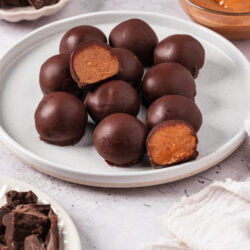 If enjoying keto peanut butter balls as a snack, consider pairing them with other low-carb items. Good candidates include Protein Balls or Chicken Jerky. As always, carefully check the serving size on any snack so you don’t overdo the portion size! If you’re serving keto peanut butter balls as a sweet treat or dessert, they go well with other gluten-free desserts like Flourless Chocolate Cake or Flourless Peanut Butter Cookies. Any of these options are delicious, easy ways to enjoy a sweet treat without a lot of carbs.