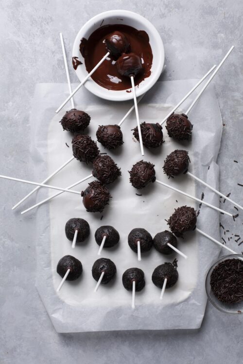 You can find lollipop sticks being sold at most culinary stores or online. If you can’t find any lollipop sticks, feel free to use toothpicks or wooden skewers. You can also make it without any lollipop sticks or skewers—just enjoy them as bite-sized cake balls.