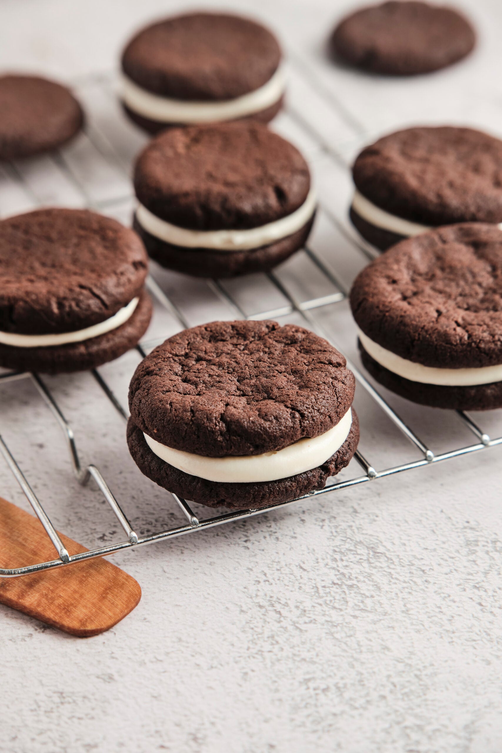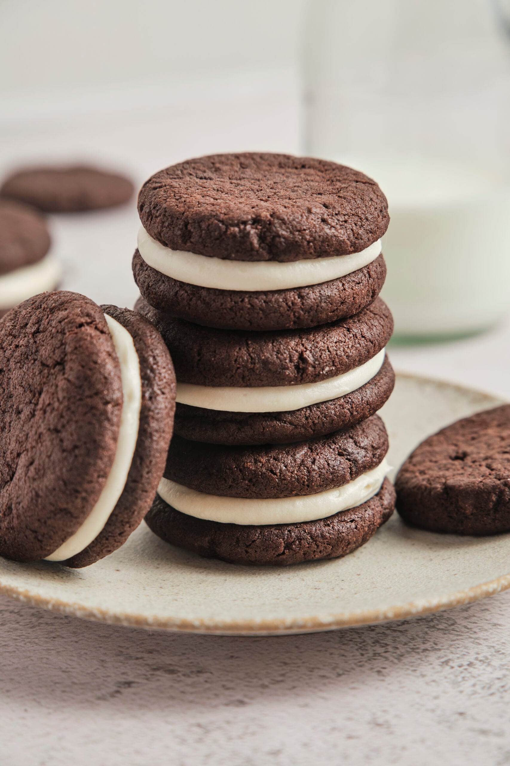 Serve your homemade Oreo cookies alongside a glass of cold milk, a mug of Rich And Creamy Hot Chocolate, or a Copycat Starbucks Vanilla Spice Latte for dunking. They also pair nicely with a scoop of Vanilla Ice Cream or Dark Chocolate Ice Cream for extra indulgence.