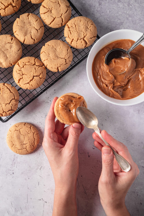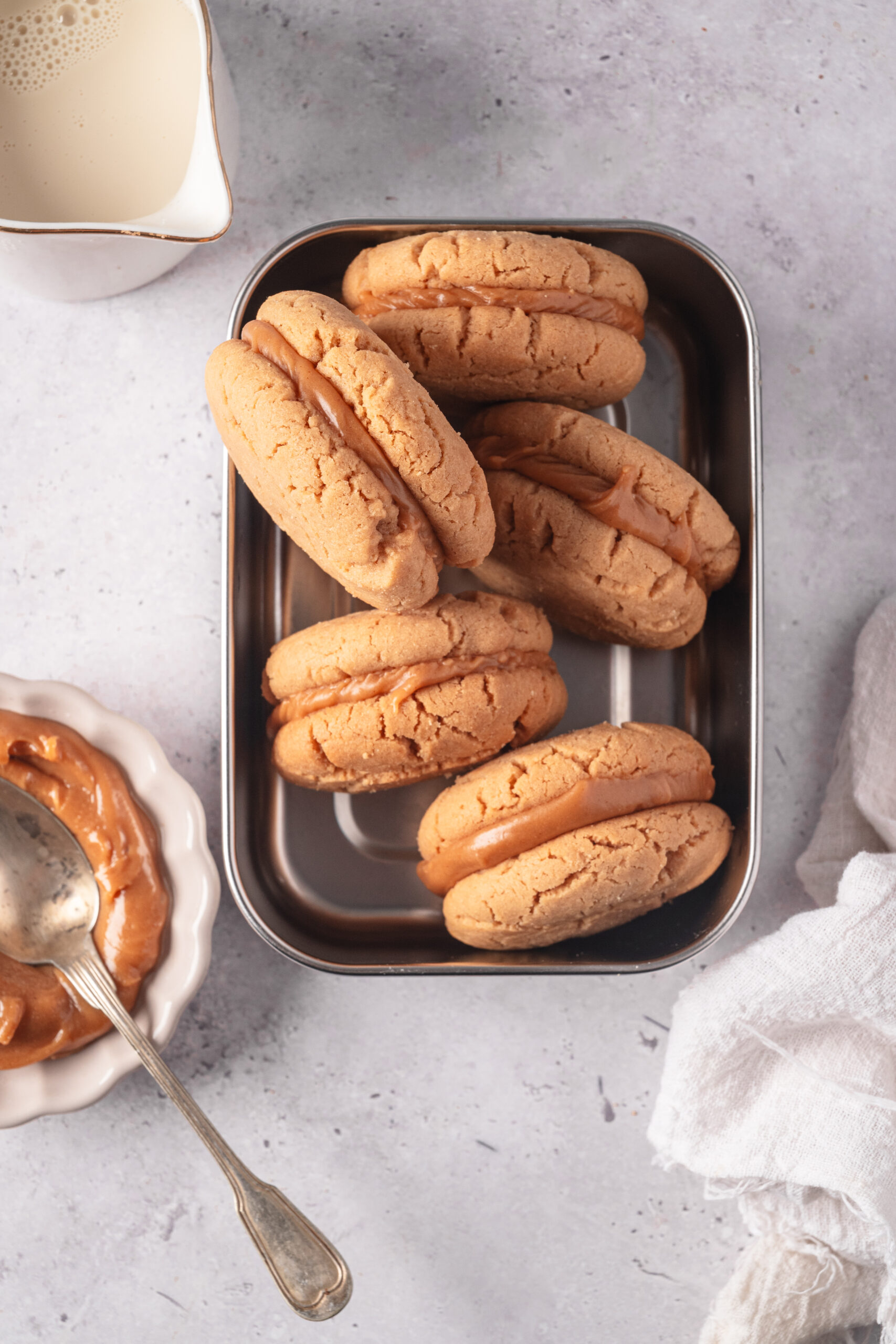 To me, processed peanut butter almost tastes like a dessert. It’s simply too sugary, and with a recipe like this, natural peanut butter works better. It’s what gives the cookie sandwiches their home-baked flavor. Go natural if you can!