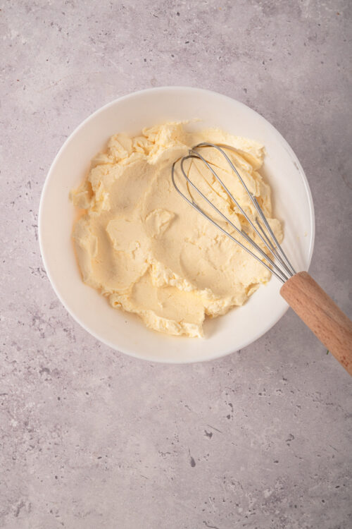 - In a large bowl or the bowl of a stand mixer with the paddle attachment, beat the softened butter, powdered sugar, and salt until light and fluffy, about 3-5 minutes.