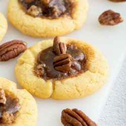 Chewy, nutty, and buttery, these pecan pie cookies are everything you want and more in a sweet treat. They’re the perfect combination of flavors from the spiced nuttiness of a pecan pie and the richness of a sugar cookie.