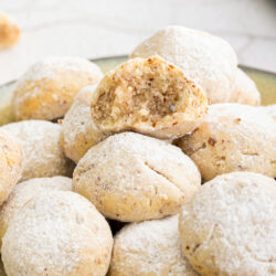 Lots of versions of Russian tea cakes call for ground nuts, while others—like ours—require finely chopped nuts. Does it matter? Only if it matters to you! Ground nuts integrate into the dough, contributing to the cookie’s soft texture and rich flavor; chopped nuts will also provide flavor in every bite, but they bring a textural contrast to the cookies. Both ground and chopped nuts work, so it really just depends on your preferences. Also, while we love walnuts in this recipe, you can also use almonds, pecans, hazelnuts, and even pistachios.