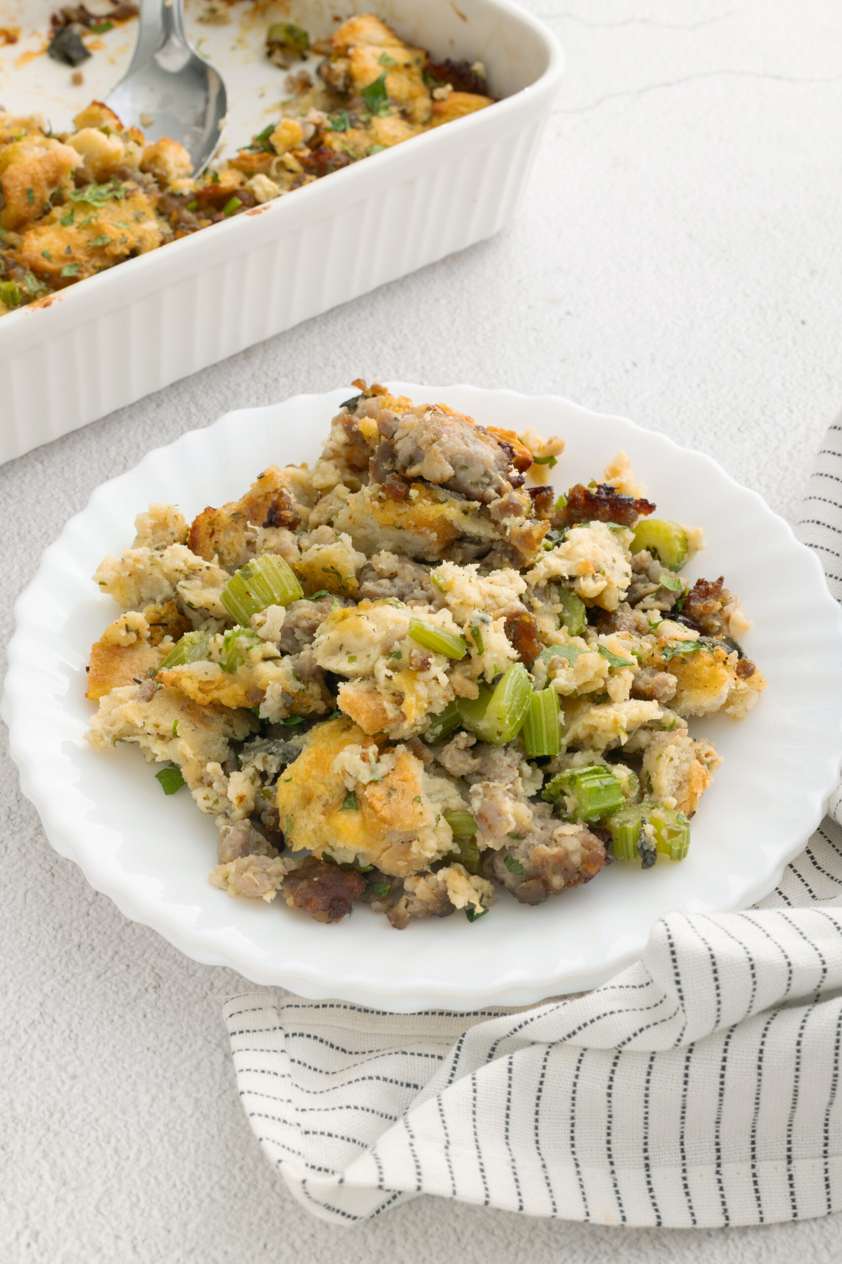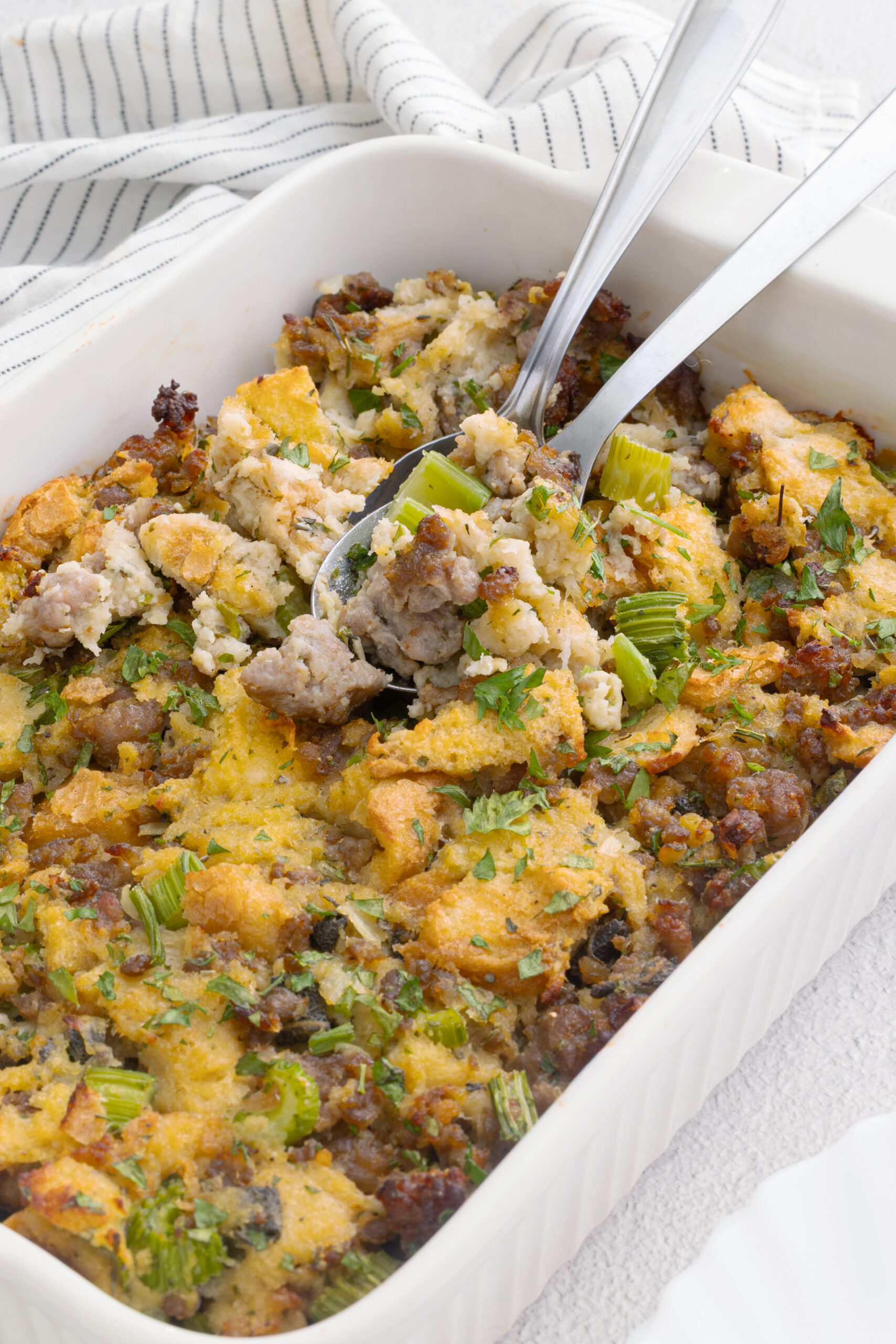 Certain dishes are so much a part of specific holidays or celebrations that it seems almost sacrilegious to serve them at any other time. This is how I used to feel about stuffing, a dish so intimately attached to Thanksgiving that I never considered making it any other time of the year. That is, until I made this sausage stuffing.