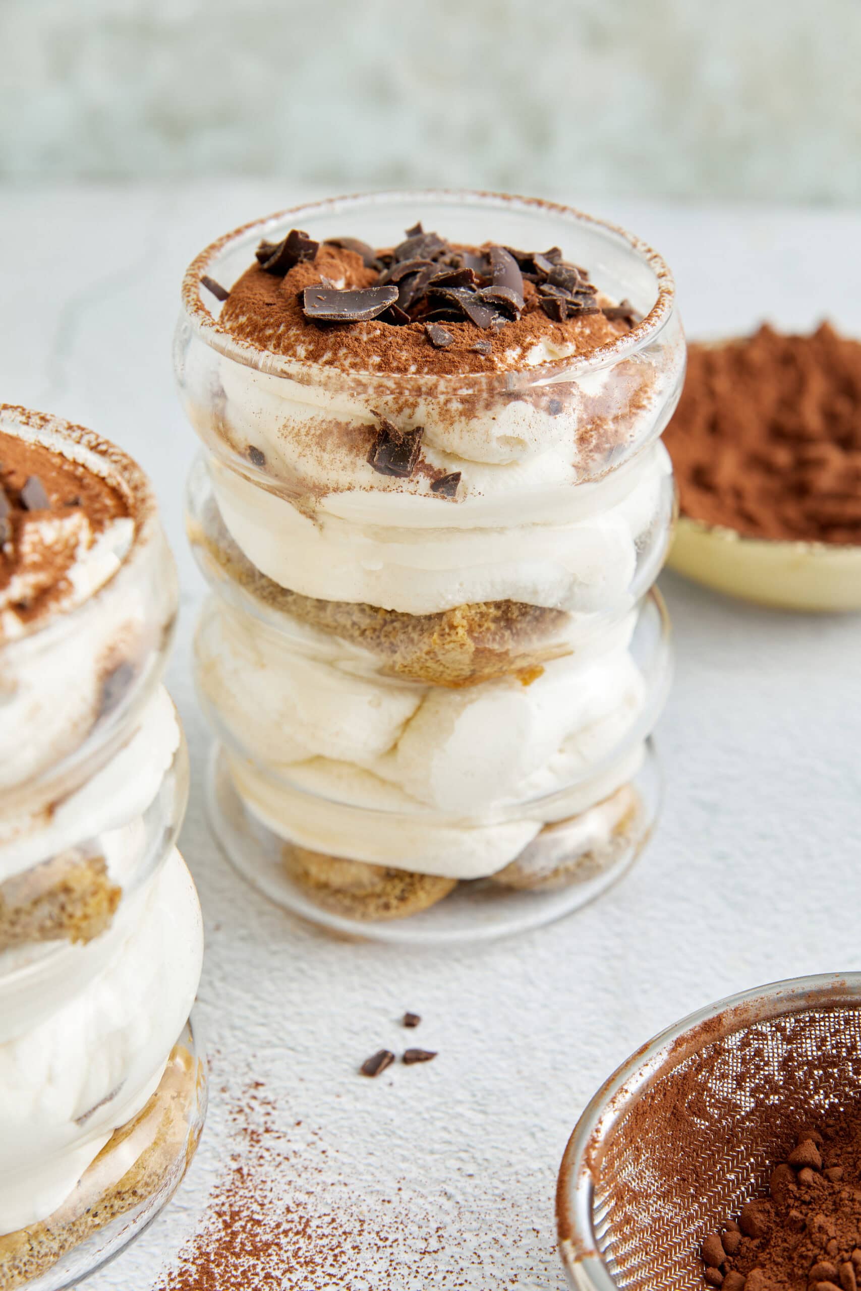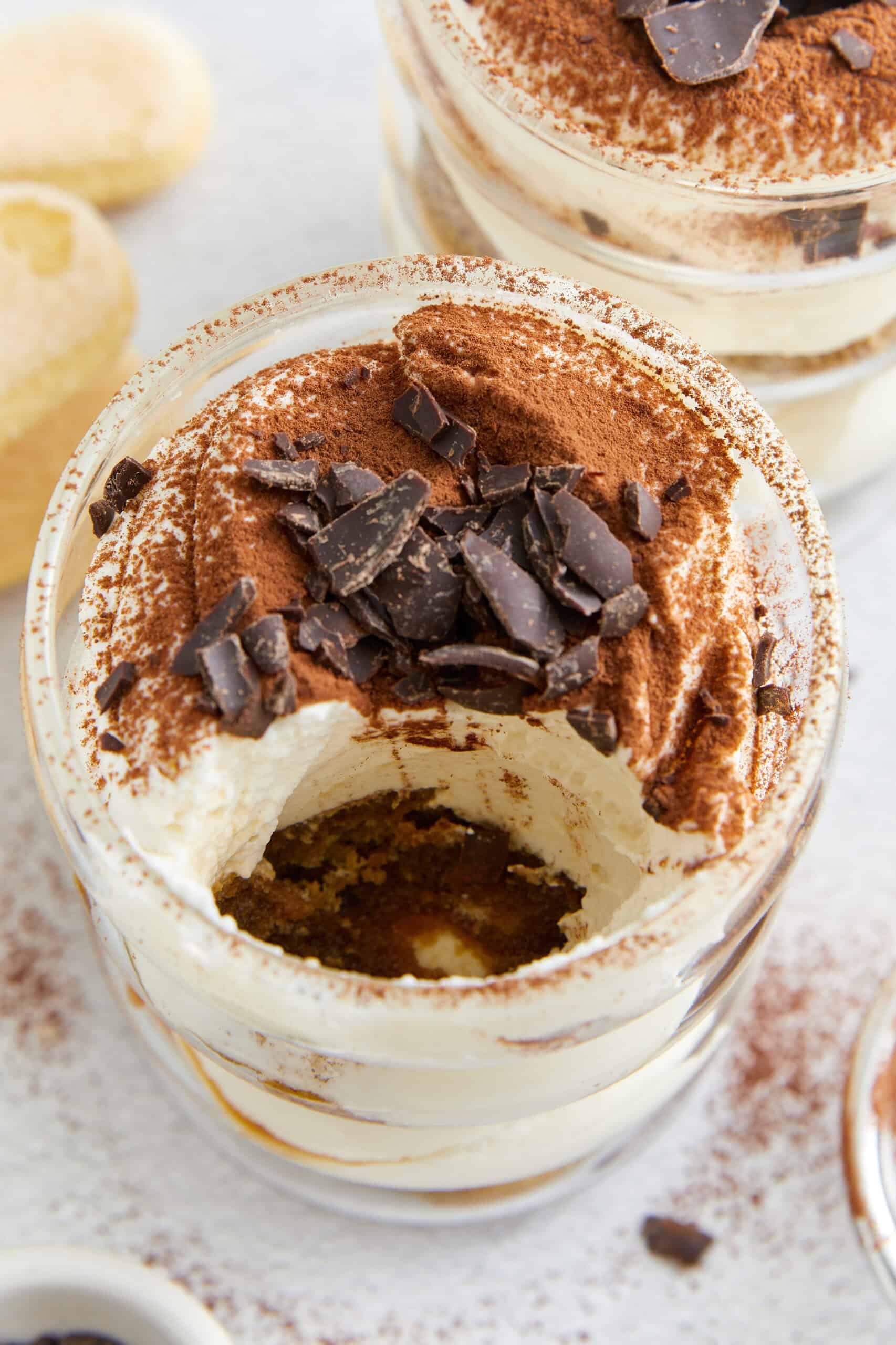 You will love tiramisu cups because you get to enjoy all of the wonderful creamy, pillowy texture of the classic dessert—in your own personal serving! Whether you serve them in large glasses, wine goblets, or narrow flutes is up to you. Tiramisu cups taste as good as they look. Bonus: This is a make-ahead recipe, which is ideal for entertaining.