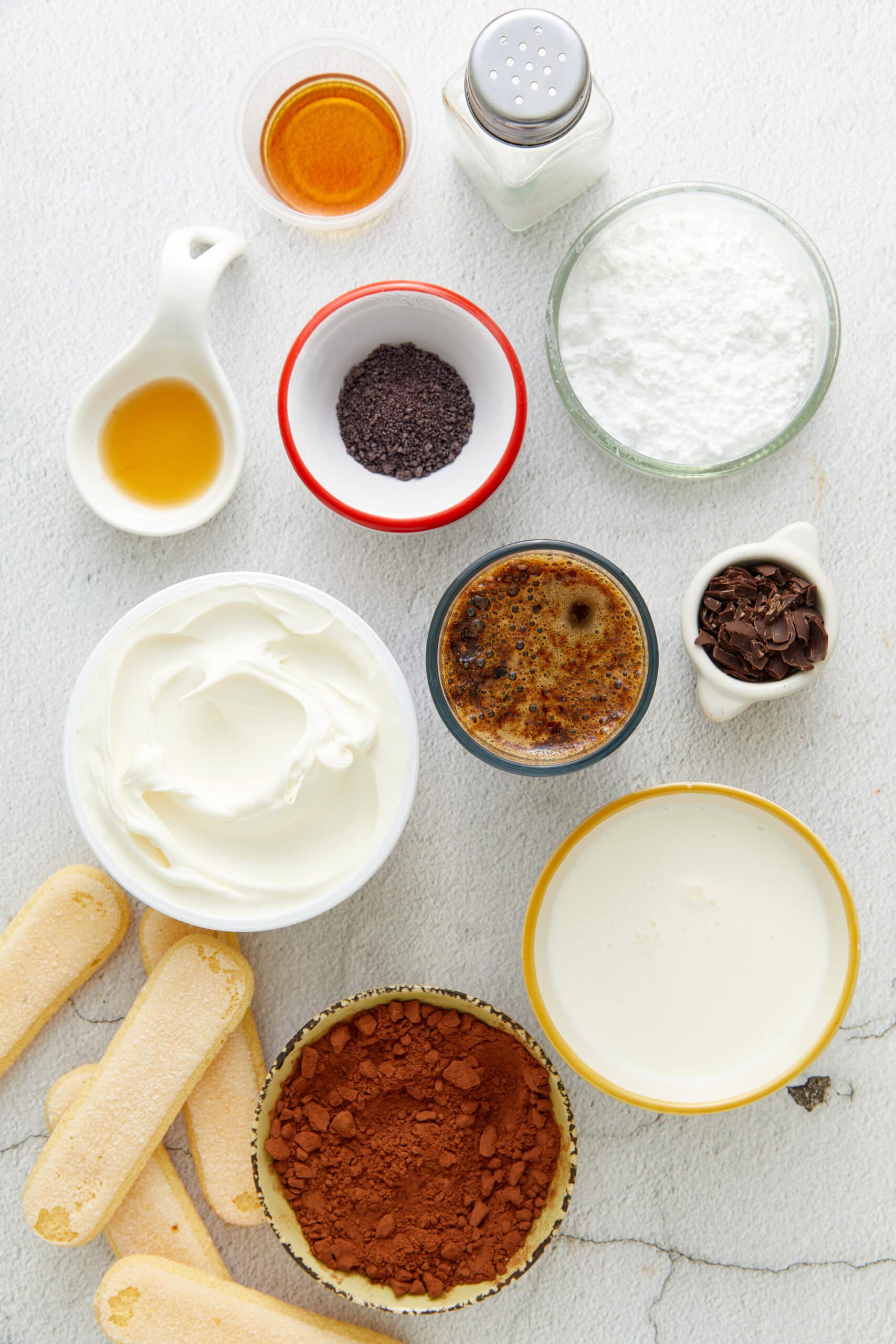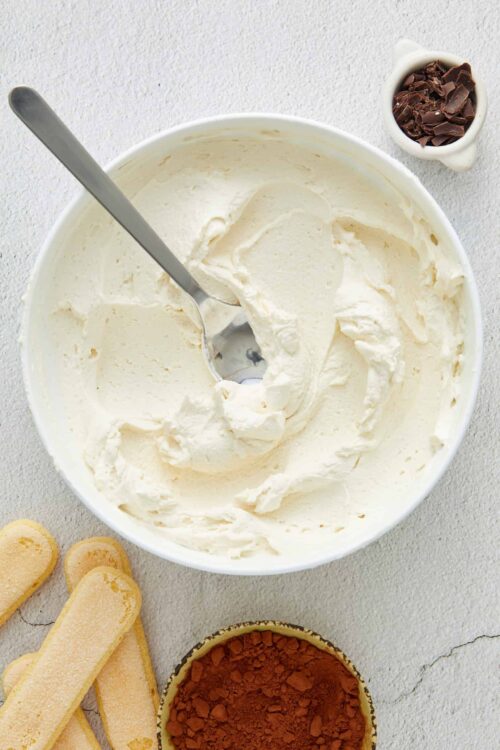 Ladyfingers, or savoiardi in Italian, are sponge cookies shaped like oversized fingers (think giant fingers!). Ranging in texture from a little soft to crispy, these light and airy cookies soak up the espresso-Marsala wine mixture. They’re layered with the creamy mascarpone mixture and soften during the chill time until they’re wonderfully cake-like. You can either buy them in the cookie aisle of your supermarket or make your own Ladyfingers from scratch.
