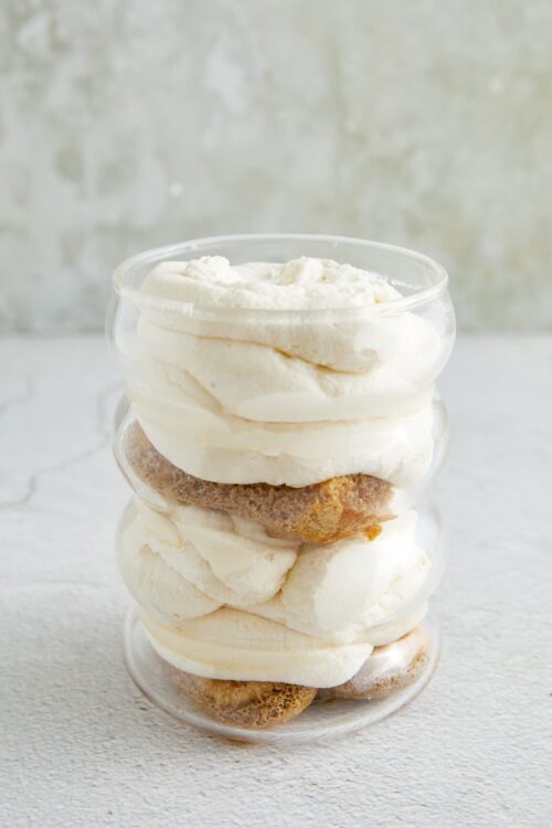 While classic tiramisu is not a centuries-old Italian recipe, it’s been a staple of Italian cuisine for several decades. Ever since the 1970s, when tiramisu first became popular in Northern Italy, it has provided a decadent yet refreshing finale to many a meal. A loose translation of the word tiramisu is “pick-me-up,” which stems from the inclusion of espresso in the dessert. In this version, the translation works both for the espresso and for the fact that you can pick it up, mingle, and eat all at the same time. Tiramisu cups are great for a refined, handheld sweet treat.